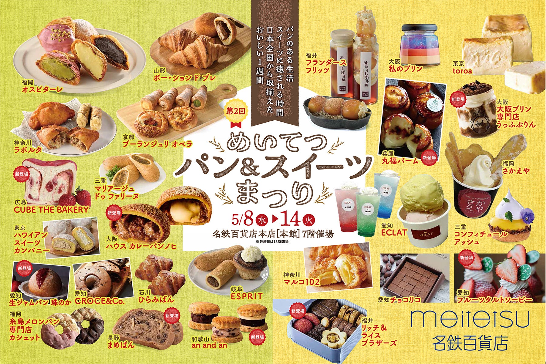 参照元:PR TIMES / 株式会社名鉄百貨店 【名鉄百貨店本店】日本全国の美味しいパンやスイーツが大集合!「第2回 めいてつパン&スイーツまつり」を開催! 5月8日(水)~14日(火)まで